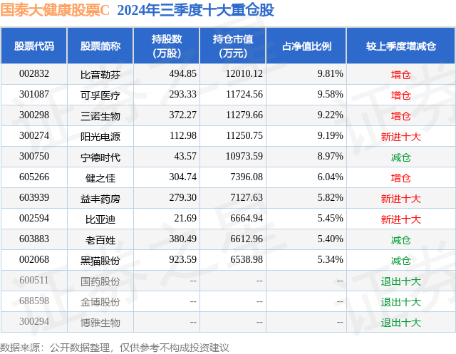 证券之星消息,日前国泰大健康股票C基金公布三季报,2024年三季度最新规模0.2亿元,季度净值涨幅为13.89%。