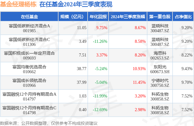 证券之星消息,日前富国低碳新经济混合C基金公布三季报,2024年三季度最新规模3.49亿元,季度净值涨幅为8.58%。