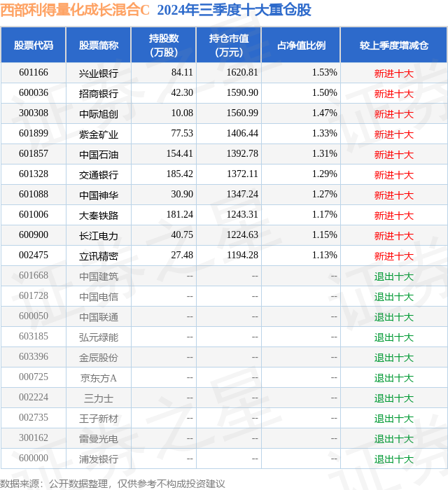 证券之星消息,日前西部利得量化成长混合C基金公布三季报,2024年三季度最新规模2.48亿元,季度净值涨幅为13.51%。