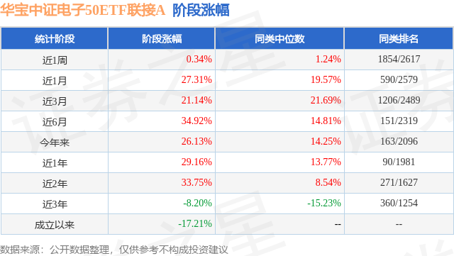 从业绩表现来看,华宝中证电子50ETF联接A基金过去一年净值涨幅为29.16%,在同类基金中排名90/1981,同类基金过去一年净值涨幅中位数为13.77%。而基金过去一年的最大回撤为-22.57%,成立以来的最大回撤为-47.85%。