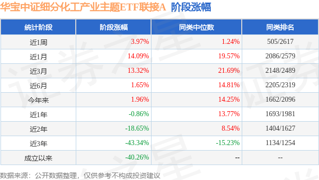 证券之星消息,日前华宝中证细分化工产业主题ETF联接A基金公布三季报,2024年三季度最新规模0.31亿元,季度净值涨幅为9.48%。
