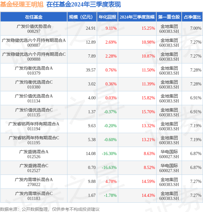 证券之星消息,日前广发盛锦混合A基金公布三季报,2024年三季度最新规模14.08亿元,季度净值涨幅为8.63%。