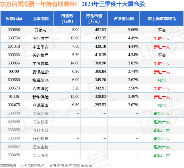 证券之星消息,日前东方品质消费一年持有期混合C基金公布三季报,2024年三季度最新规模0.13亿元,季度净值涨幅为10.56%。