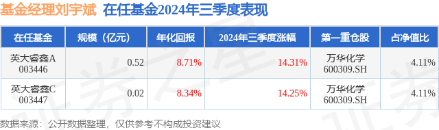 证券之星消息,日前英大睿鑫A基金公布三季报,2024年三季度最新规模0.52亿元,季度净值涨幅为14.31%。
