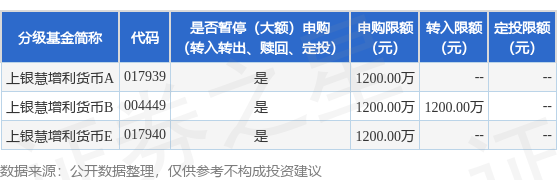证券之星消息,10月30日上银基金管理有限公司发布《上银慧增利货币市场基金暂停代销渠道大额申购、转换转入及定期定额投资业务的公告》。公告中提示,为了保证基金的平稳运作,保护基金持有人的利益,自2024年10月30日起上银慧增利货币市场基金暂停代销渠道大额申购、转换转入及定期定额投资业务,申购、转换转入上限金额为1200.0万元,下属分级基金调整明细如下: