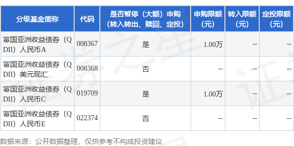 证券之星消息,11月19日富国基金管理有限公司发布《关于富国亚洲收益债券型证券投资基金(QDII)(人民币A、C类份额)暂停大额申购及定期定额投资业务的公告》。公告中提示,为了保证基金的平稳运作,保护基金持有人的利益,自2024年11月20日起富国亚洲收益债券型证券投资基金(QDII)(人民币A、C类份额)暂停大额申购及定期定额投资业务,下属分级基金调整明细如下: