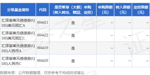 注:1、本基金汇添富美元债债券(QDII)人民币A暂停申购、定期定额投资业务期间,其他业务仍照常办理。本基金汇添富美元债债券(QDII)人民币A恢复申购、定期定额投资业务的具体时间将另行公告。