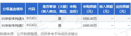 证券之星消息,1月7日兴华基金管理有限公司发布《兴华安丰纯债债券型证券投资基金暂停大额申购业务的公告》。公告中提示,为保护现有基金份额持有人利益,保障基金平稳运作,自2025年1月7日起兴华安丰纯债债券型证券投资基金暂停大额申购业务,申购上限金额为1000.0万元,下属分级基金调整明细如下: