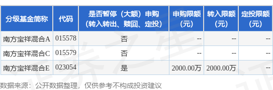 证券之星消息,1月7日南方基金管理股份有限公司发布《南方宝祥混合型证券投资基金E类基金份额限制大额申购、定投和转换转入业务的公告》。公告中提示,为保护基金份额持有人的利益,自2025年1月9日起南方宝祥混合型证券投资基金E类基金份额限制大额申购、定投和转换转入业务,申购、转换转入上限金额为2000.0万元,下属分级基金调整明细如下: