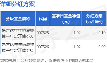 证券之星消息,1月7日发布《易方达年年恒夏纯债一年定期开放债券型发起式证券投资基金分红公告》。本次分红为2024年度的第4次分红。公告显示,本次分红的收益分配基准日为12月12日,详细分红方案如下: