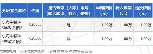 注:东海中债0-3年政金债A(交易代码:020585)以下简称“A类基金份额”,东海中债0-3年政金债C(交易代码:020586)以下简称“C类基金份额”。