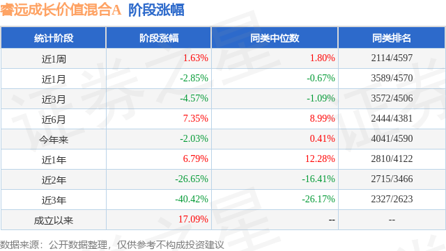 从业绩表现来看,睿远成长价值混合A基金过去一年净值涨幅为6.8%,在同类基金中排名2810/4122,同类基金过去一年净值涨幅中位数为12.28%。而基金过去一年的最大回撤为-13.95%,成立以来的最大回撤为-56.88%。