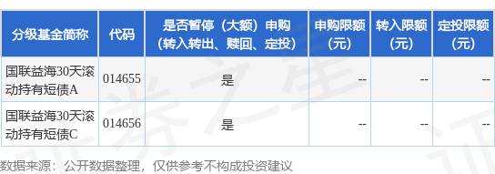 注:(1)国联益海30天滚动持有短债债券型证券投资基金以下简称“本基金”;