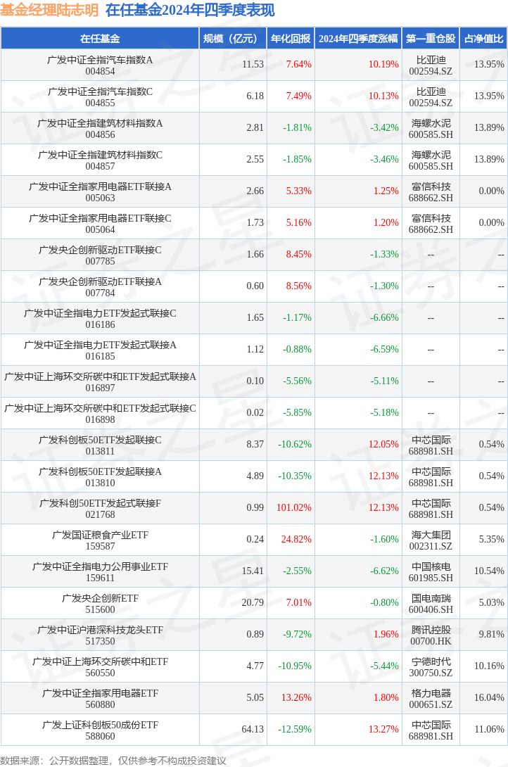 广发央企创新ETF现任基金经理为陆志明。其中在任基金经理陆志明已从业13年又237天,2021年11月17日正式接手管理广发央企创新ETF,任职期间累计回报为14.07%。目前还管理着22只基金产品(包括A类和C类),其中本季度表现最佳的基金为广发上证科创板50成份ETF(588060),季度净值涨幅为13.27%。