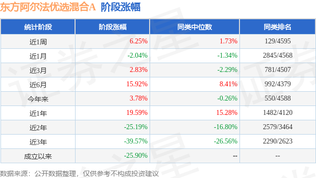 从业绩表现来看,东方阿尔法优选混合A基金过去一年净值涨幅为19.59%,在同类基金中排名1482/4120,同类基金过去一年净值涨幅中位数为15.28%。而基金过去一年的最大回撤为-25.49%,成立以来的最大回撤为-68.91%。