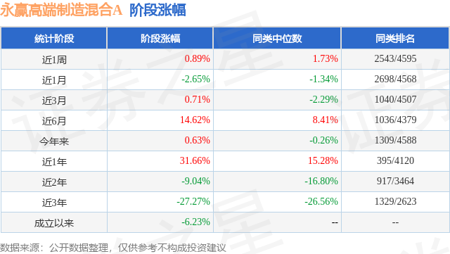 从业绩表现来看,永赢高端制造混合A基金过去一年净值涨幅为31.66%,在同类基金中排名395/4120,同类基金过去一年净值涨幅中位数为15.28%。而基金过去一年的最大回撤为-18.84%,成立以来的最大回撤为-63.0%。
