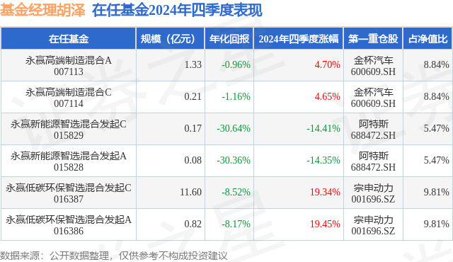 证券之星消息,日前永赢高端制造混合C基金公布四季报,2024年四季度最新规模0.21亿元,季度净值涨幅为4.65%。