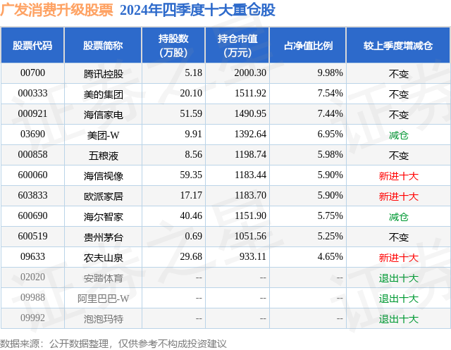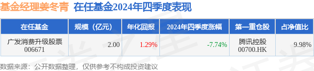 证券之星消息,日前广发消费升级股票基金公布四季报,2024年四季度最新规模2.0亿元,季度净值涨幅为-7.74%。