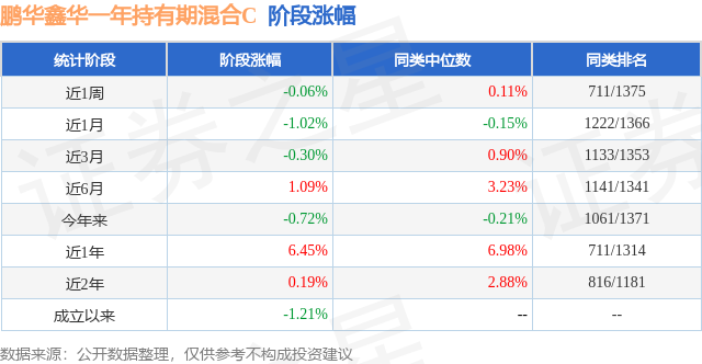 从业绩表现来看,鹏华鑫华一年持有期混合C基金过去一年净值涨幅为6.45%,在同类基金中排名711/1314,同类基金过去一年净值涨幅中位数为6.98%。而基金过去一年的最大回撤为-2.07%,成立以来的最大回撤为-7.47%。