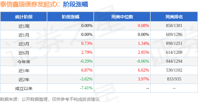 从业绩表现来看,泰信鑫瑞债券发起式C基金过去一年净值涨幅为6.87%,在同类基金中排名530/1102,同类基金过去一年净值涨幅中位数为6.62%。而基金过去一年的最大回撤为-4.83%,成立以来的最大回撤为-15.48%。