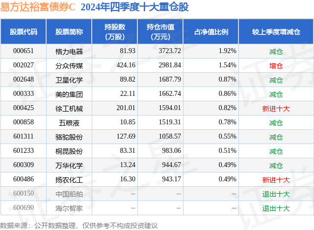 证券之星消息,日前易方达裕富债券C基金公布四季报,2024年四季度最新规模0.89亿元,季度净值涨幅为1.95%。