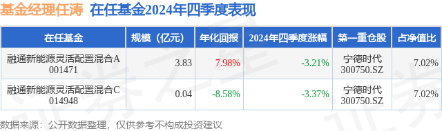 证券之星消息,日前融通新能源灵活配置混合C基金公布四季报,2024年四季度最新规模0.04亿元,季度净值涨幅为-3.37%。