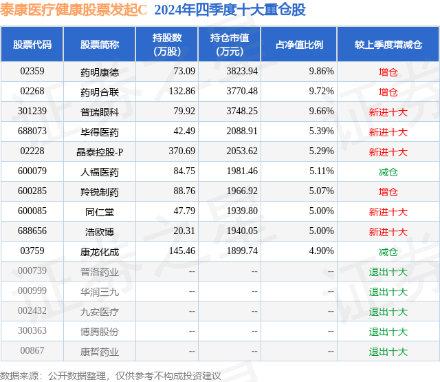 证券之星消息,日前泰康医疗健康股票发起C基金公布四季报,2024年四季度最新规模1.94亿元,季度净值涨幅为-4.42%。