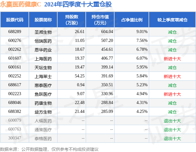 证券之星消息,日前永赢医药健康C基金公布四季报,2024年四季度最新规模0.42亿元,季度净值涨幅为-5.7%。
