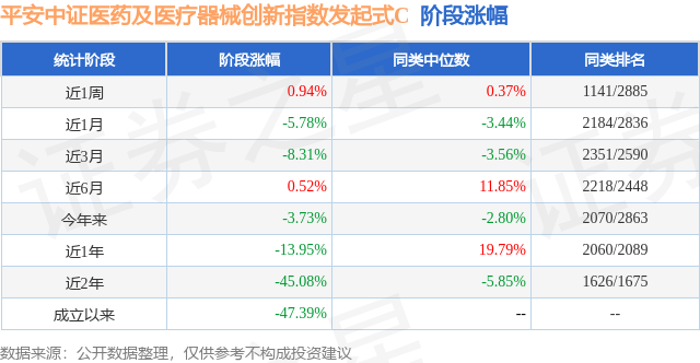 从业绩表现来看,平安中证医药及医疗器械创新指数发起式C基金过去一年净值涨幅为-13.95%,在同类基金中排名2060/2089,同类基金过去一年净值涨幅中位数为19.79%。而基金过去一年的最大回撤为-28.24%,成立以来的最大回撤为-57.76%。
