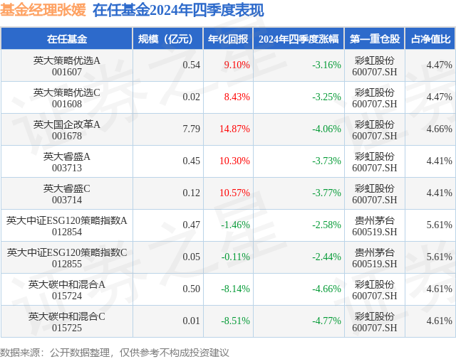 证券之星消息,日前英大中证ESG120策略指数C基金公布四季报,2024年四季度最新规模0.05亿元,季度净值涨幅为-2.44%。