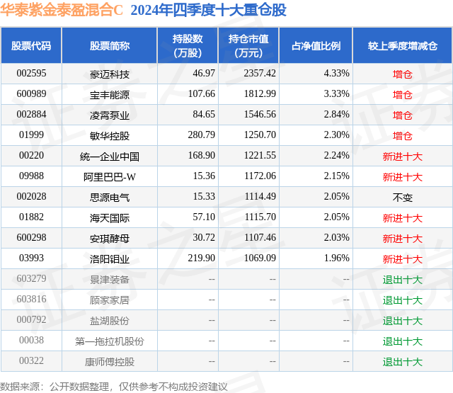 证券之星消息,日前华泰紫金泰盈混合C基金公布四季报,2024年四季度最新规模4.96亿元,季度净值涨幅为-4.96%。