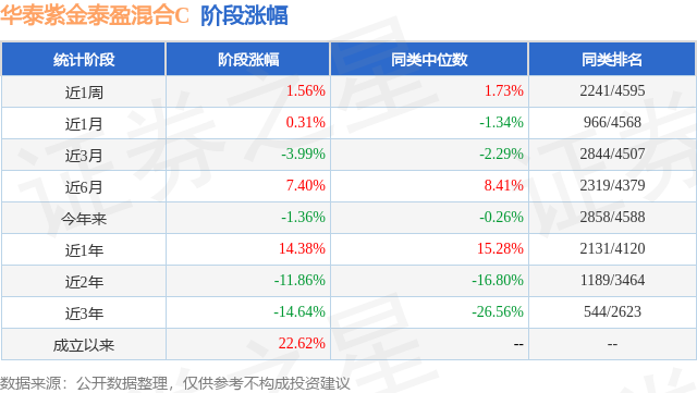 从业绩表现来看,华泰紫金泰盈混合C基金过去一年净值涨幅为14.38%,在同类基金中排名2131/4120,同类基金过去一年净值涨幅中位数为15.28%。而基金过去一年的最大回撤为-16.41%,成立以来的最大回撤为-43.26%。