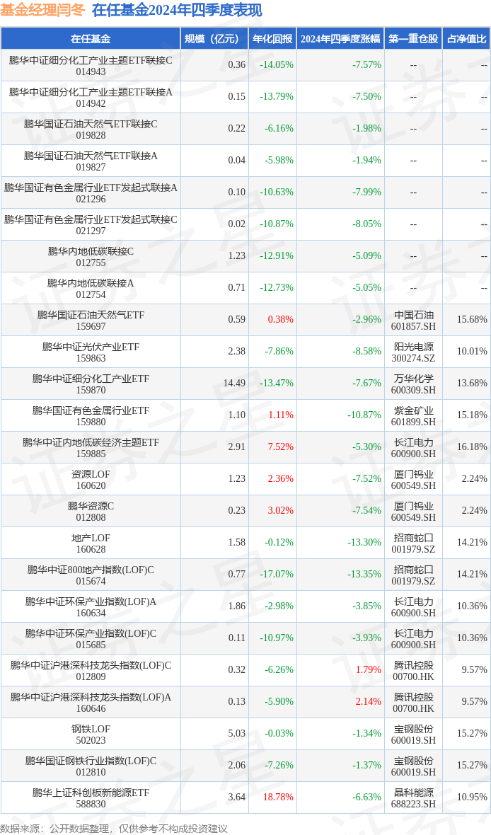 证券之星消息,日前鹏华中证800地产指数(LOF)C基金公布四季报,2024年四季度最新规模0.77亿元,季度净值涨幅为-13.35%。