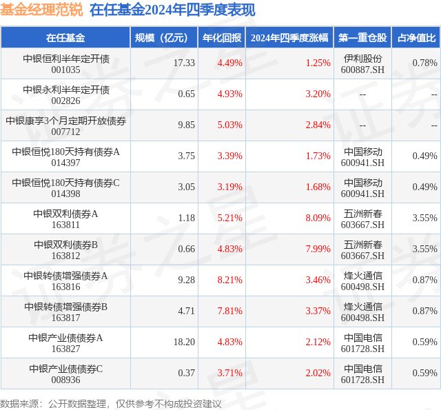 证券之星消息,日前中银产业债债券C基金公布四季报,2024年四季度最新规模0.37亿元,季度净值涨幅为2.02%。