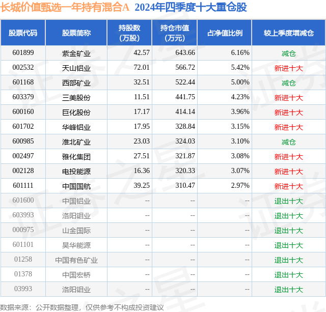 证券之星消息,日前长城价值甄选一年持有混合A基金公布四季报,2024年四季度最新规模0.93亿元,季度净值涨幅为-15.99%。