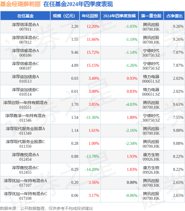 证券之星消息,日前淳厚信睿混合C基金公布四季报,2024年四季度最新规模4.89亿元,季度净值涨幅为-1.26%。