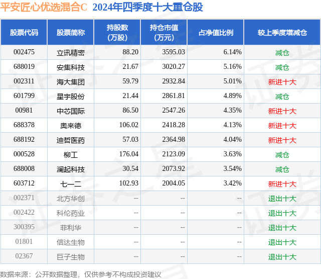 证券之星消息,日前平安匠心优选混合C基金公布四季报,2024年四季度最新规模0.63亿元,季度净值涨幅为1.55%。
