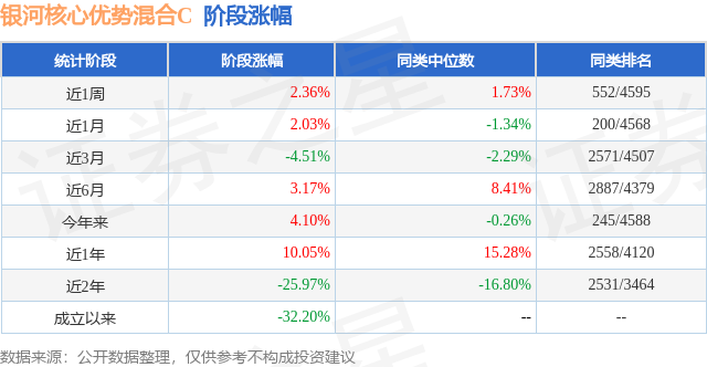 从业绩表现来看,银河核心优势混合C基金过去一年净值涨幅为10.05%,在同类基金中排名2558/4120,同类基金过去一年净值涨幅中位数为15.28%。而基金过去一年的最大回撤为-21.81%,成立以来的最大回撤为-43.97%。