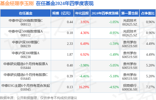 中泰研究精选6个月持有股票C现任基金经理为李玉刚。其中在任基金经理李玉刚已从业3年又19天,2022年11月11日正式接手管理中泰研究精选6个月持有股票C,任职期间累计回报为-9.53%。目前还管理着7只基金产品(包括A类和C类)。