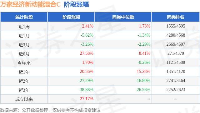 从业绩表现来看,万家经济新动能混合C基金过去一年净值涨幅为20.56%,在同类基金中排名1351/4120,同类基金过去一年净值涨幅中位数为15.28%。而基金过去一年的最大回撤为-23.18%,成立以来的最大回撤为-66.06%。