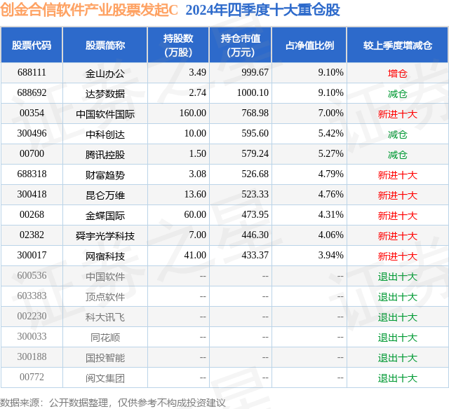 证券之星消息,日前创金合信软件产业股票发起C基金公布四季报,2024年四季度最新规模0.7亿元,季度净值涨幅为-1.35%。