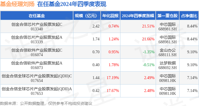 创金合信软件产业股票发起C现任基金经理为刘扬。其中在任基金经理刘扬已从业3年又104天,2022年9月29日正式接手管理创金合信软件产业股票发起C,任职期间累计回报为2.21%。目前还管理着6只基金产品(包括A类和C类),其中本季度表现最佳的基金为创金合信芯片产业股票发起A(013339),季度净值涨幅为21.66%。