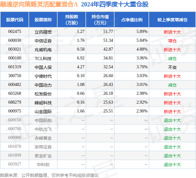 证券之星消息,日前融通逆向策略灵活配置混合A基金公布四季报,2024年四季度最新规模0.08亿元,季度净值涨幅为-3.23%。