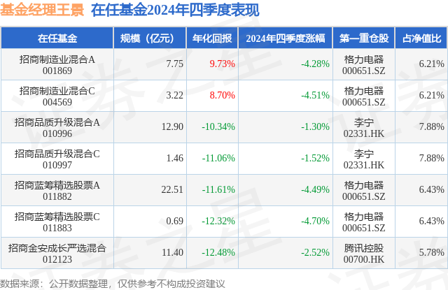 证券之星消息,日前招商制造业混合C基金公布四季报,2024年四季度最新规模3.22亿元,季度净值涨幅为-4.51%。