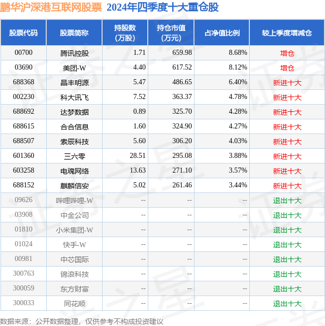 证券之星消息,日前鹏华沪深港互联网股票基金公布四季报,2024年四季度最新规模0.76亿元,季度净值涨幅为2.41%。