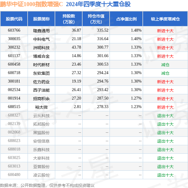 从基金规模来看,鹏华中证1000指数增强C基金2024年四季度公布的基金规模为1.17亿元,较上一期规模1.57亿元变化了-4022.44万元,环比变化了-25.61%。该基金最新一期资产配置为:股票占净值比93.96%,无债券类资产,现金占净值比12.14%。从基金持仓来看,该基金当季前十大股票仓位达13.27%,第一大重仓股为隆鑫通用(603766),持仓占比为1.48%。