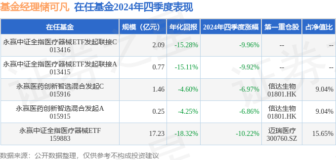 证券之星消息,日前永赢医药创新智选混合发起C基金公布四季报,2024年四季度最新规模1.46亿元,季度净值涨幅为-6.97%。