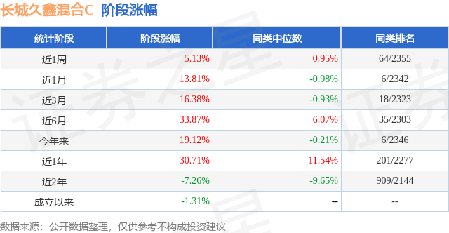 从业绩表现来看,长城久鑫混合C基金过去一年净值涨幅为30.71%,在同类基金中排名201/2277,同类基金过去一年净值涨幅中位数为11.54%。而基金过去一年的最大回撤为-19.72%,成立以来的最大回撤为-39.26%。
