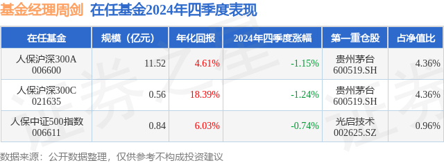 证券之星消息,日前人保中证500指数基金公布四季报,2024年四季度最新规模0.84亿元,季度净值涨幅为-0.74%。