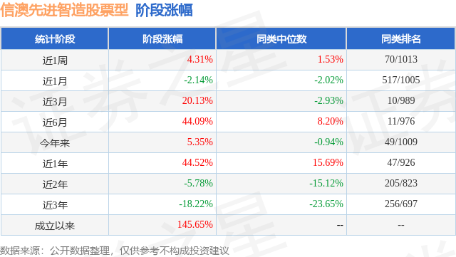 从业绩表现来看,信澳先进智造股票型基金过去一年净值涨幅为44.52%,在同类基金中排名47/926,同类基金过去一年净值涨幅中位数为15.69%。而基金过去一年的最大回撤为-25.05%,成立以来的最大回撤为-60.78%。